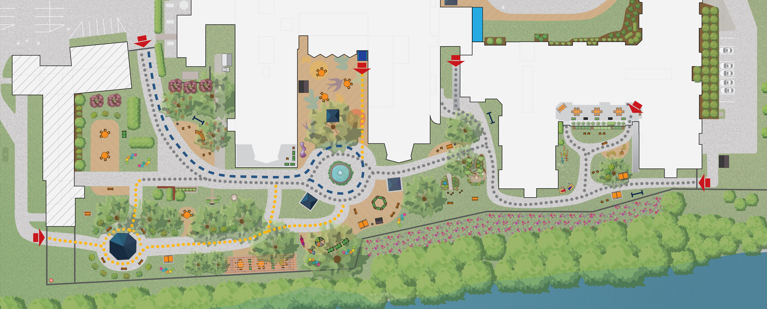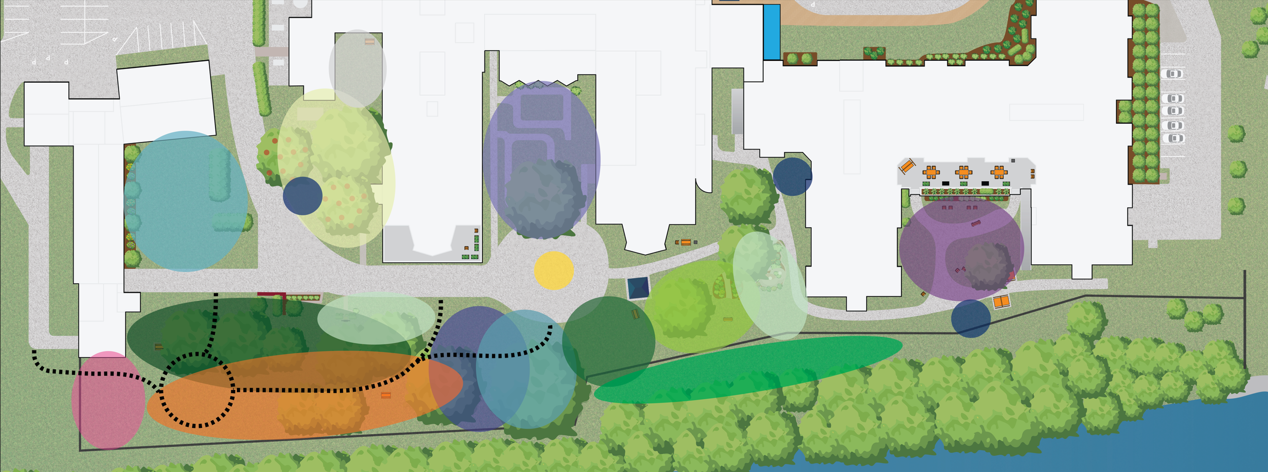 All of the input, idea generation, and concept development from the data collection phases was be used to create a proposed conceptual 2D masterplan for the redesign of the Saint-Louis LTC outdoor space. Design recommendations and specific design details/requirements of importance will supplement the proposal.
